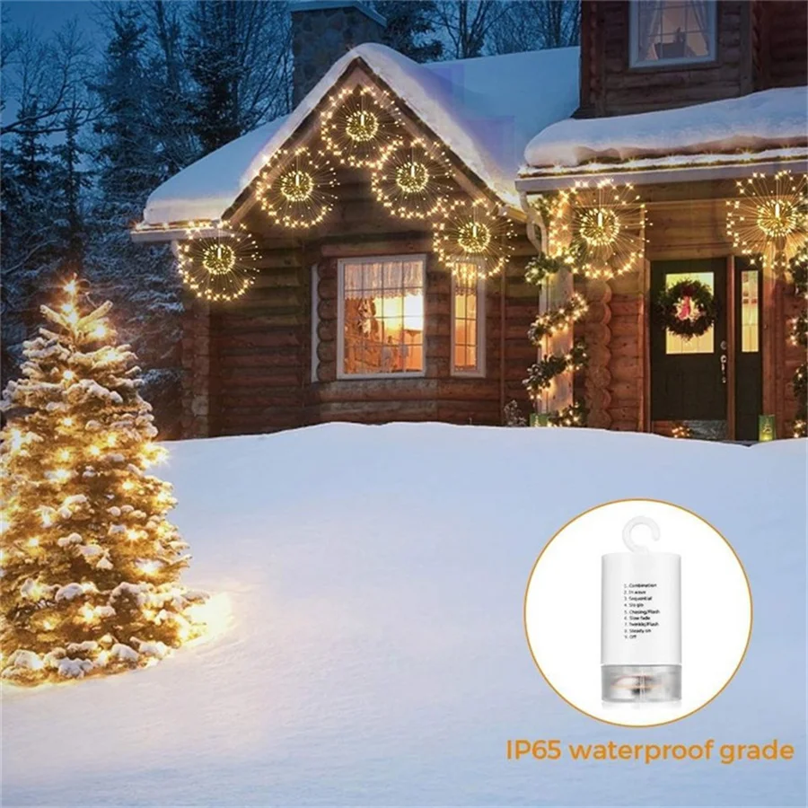 Рождественская гирлянда с фейерверками, гирлянда с питанием от батарейки, 150180светодиодов, Одуванчик, гирлянда со звездами для сада, домашний декор