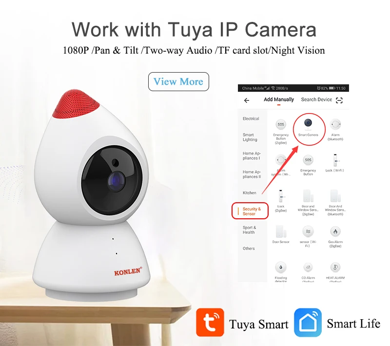 Камера использует то же приложение, что и система сигнализации. Таким образом, вы можете управлять системой сигнализации и камерой одновременно с помощью одного приложения (Tuya Smart или Smart Life. Это так удобно.