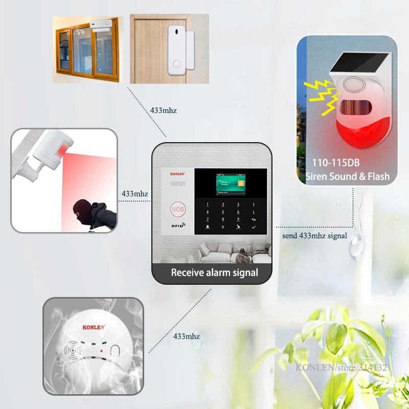1. Панель H37 отправляет уведомление о тревоге на ваш телефон android или ios через Wi-Fi, когда кто-то врывается в ваш дом, в то же время звучит Сирена.