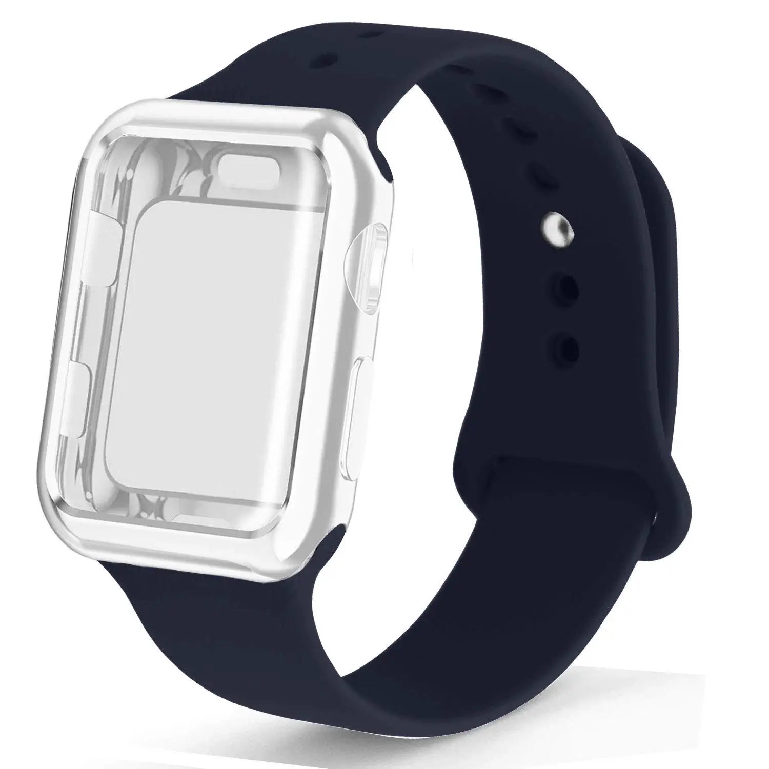 Чехол и ремешок для Apple Watch Band 44 мм 40 мм 42 мм 38 мм, силиконовые аксессуары для браслета Iwatch Series 6 SE 5 4 3