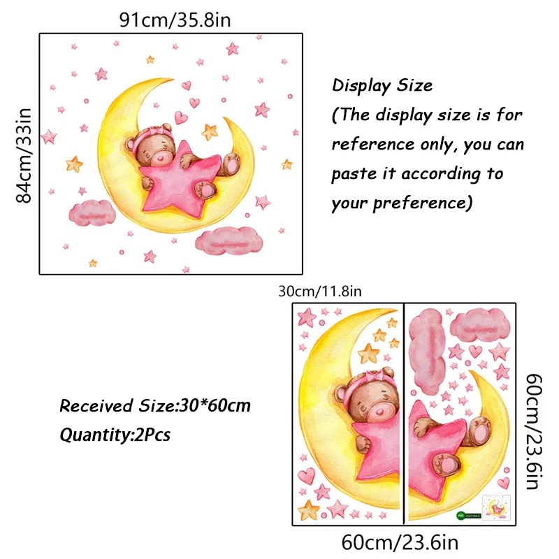 Маленький медведь в розовом фантастическом звездном небе создает тихую и красивую среду для вас, Высококачественная печать, более четкие узоры, экологически чистый ПВХ, съемный, водонепроницаемый