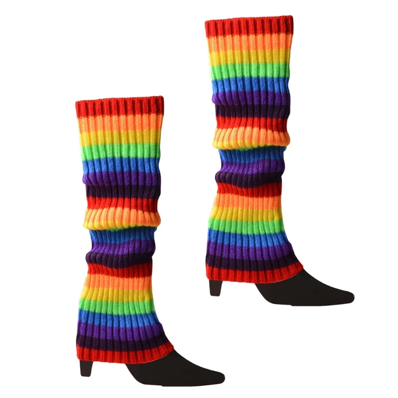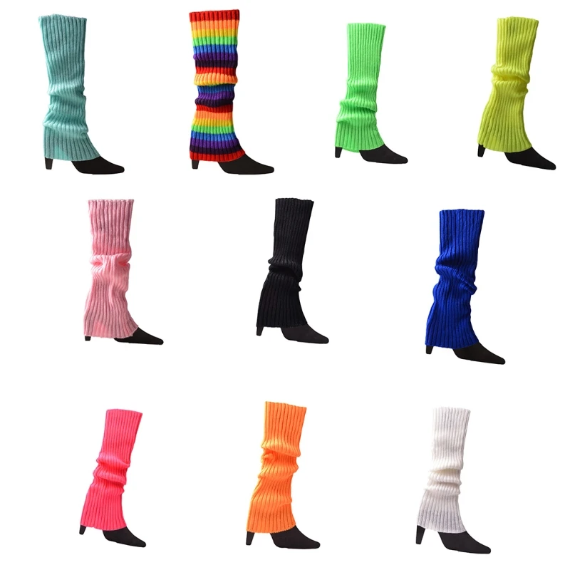 Женские винтажные вязаные гетры в рубчик 80-х, флуоресцентные цветные вязаные крючком чулки для вечерние, танцев, йоги, длинные носки для высоких ботинок