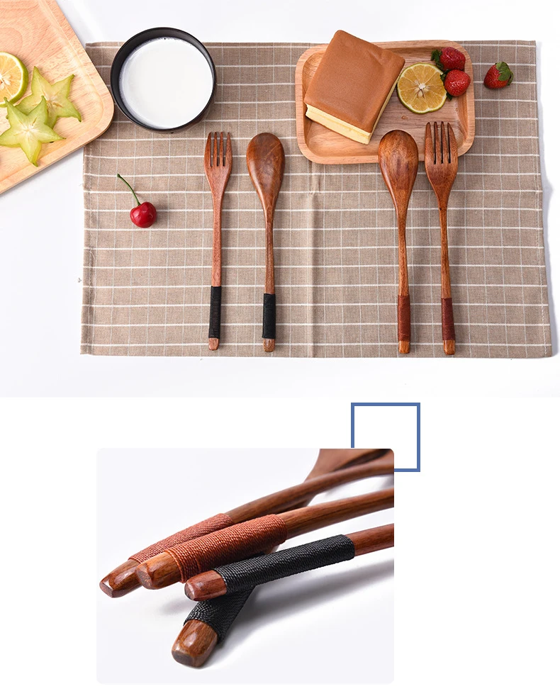 2 шт.компл. набор деревянных столовых приборов, вилка и ложка, в стиле ретро, столовые приборы для фруктов, тортов, кофе, домашняя посуда высокого качества