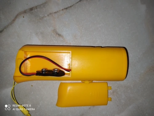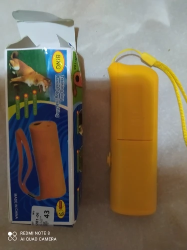 Жалко, что без батарейки. Большой, с фонариком. Пробовала на собаке, нюхает не поймет что это такое, пока не поднесла прямо к уху. Обиженно отошла. Не знаю как будет действовать на уличных собак, там близко не поднесешь. В целом довольна.