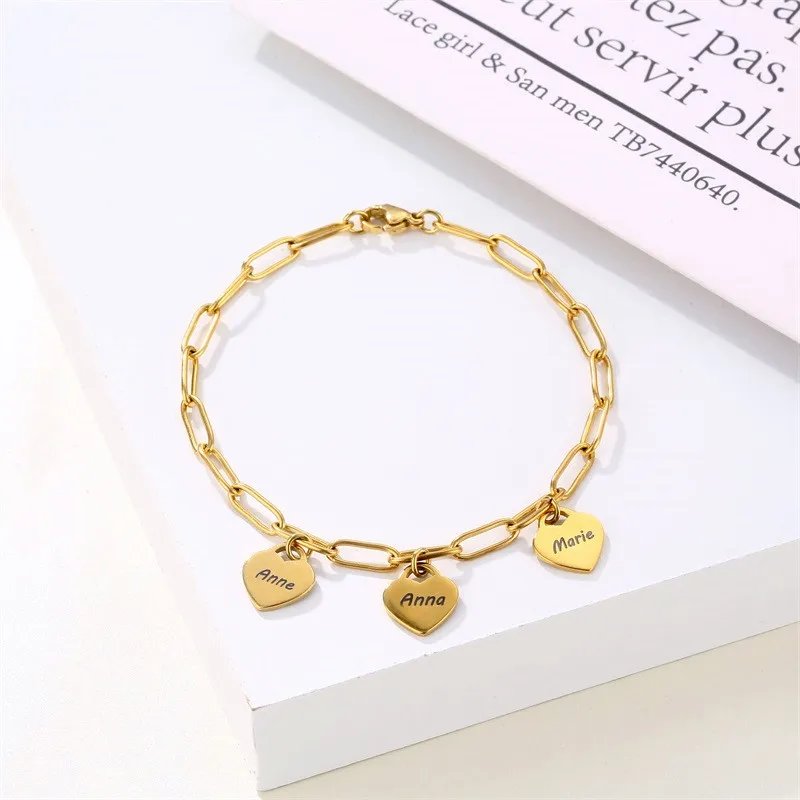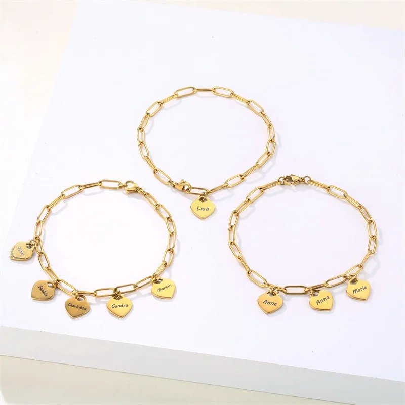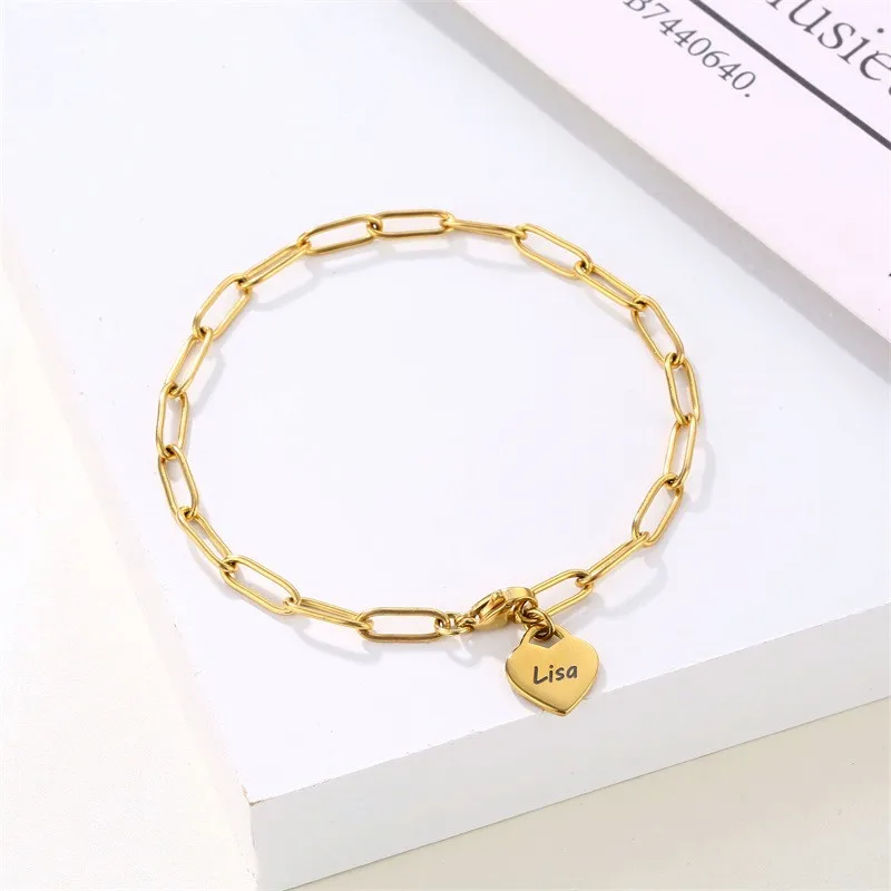 Браслет из нержавеющей стали с гравировкой имени, сердца