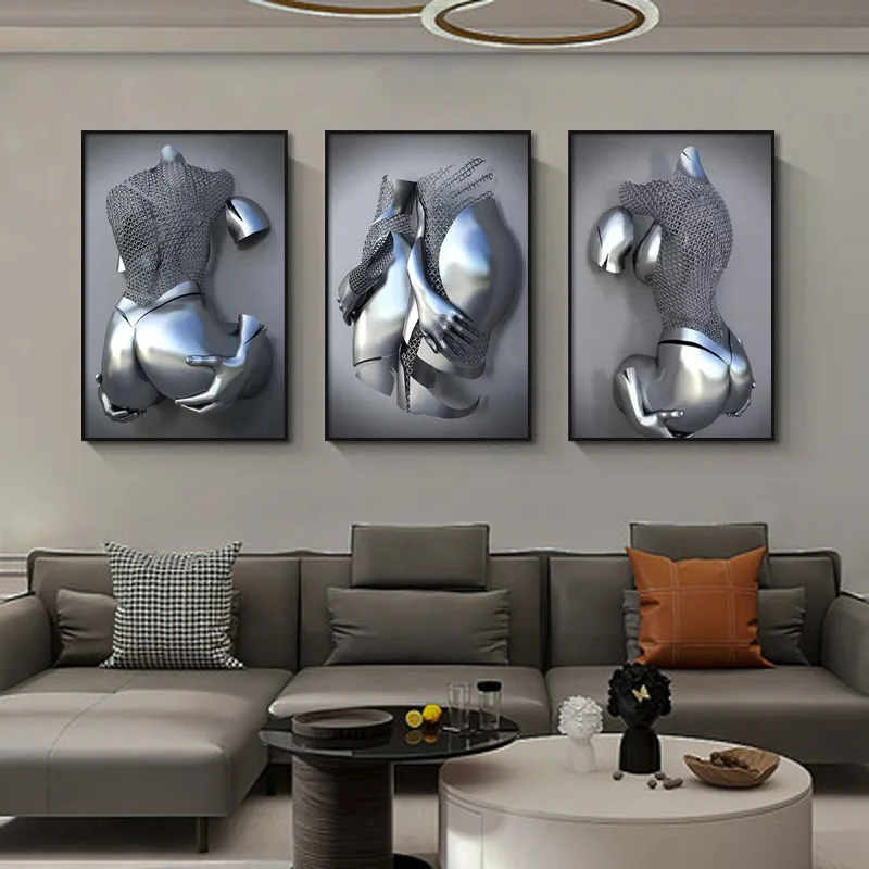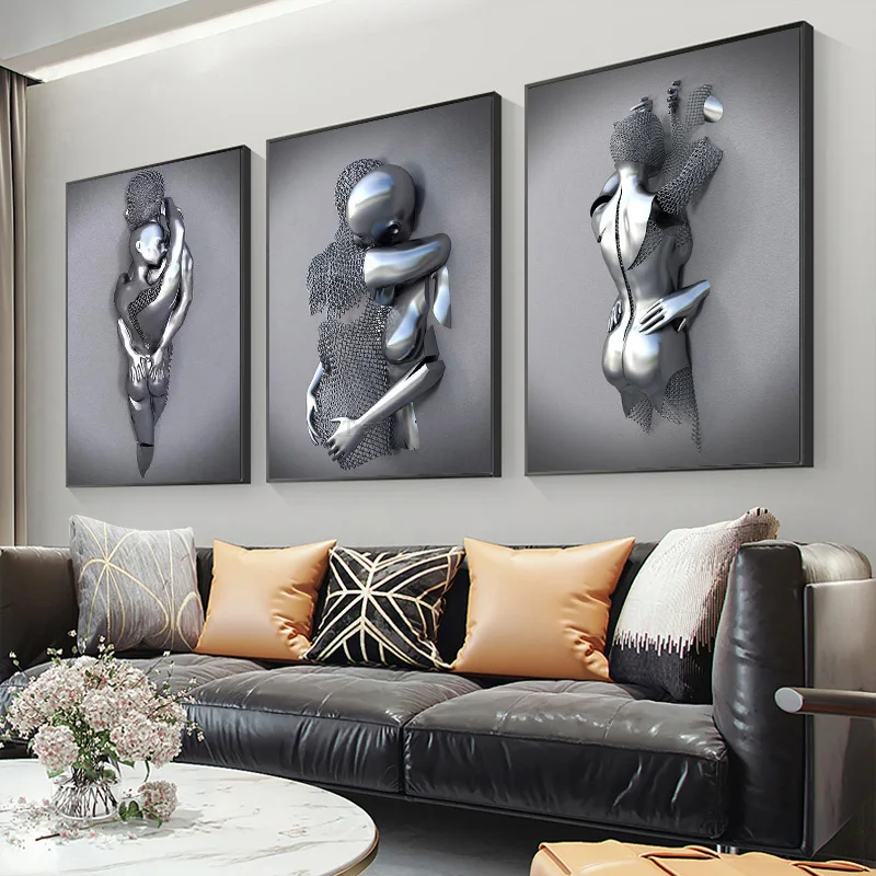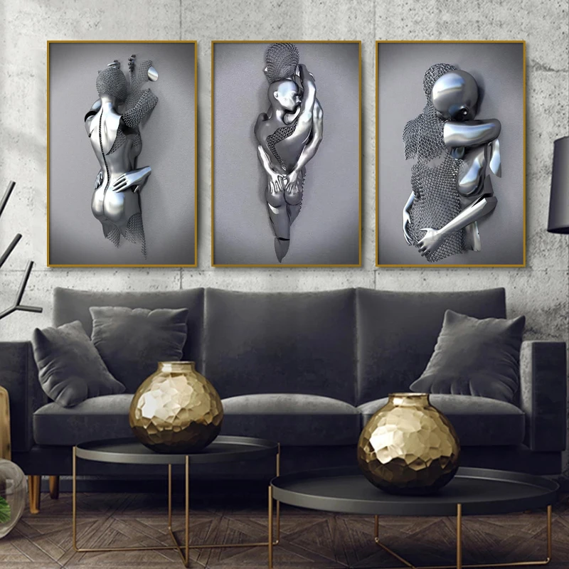 Металлическая фигурка, статуя, Картина на холсте, романтические абс...