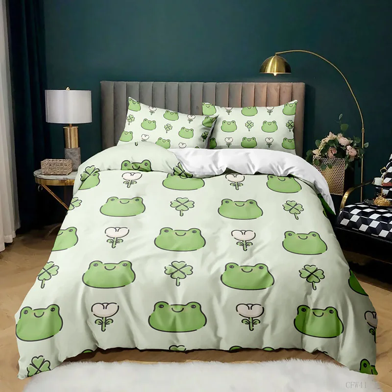 Комплект постельного белья из мягкого полиэстера и микрофибры с рисунком лягушки