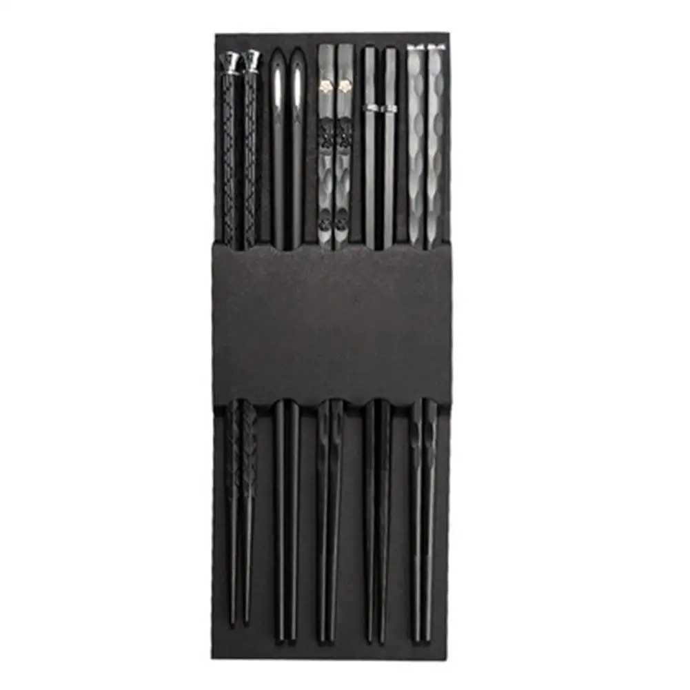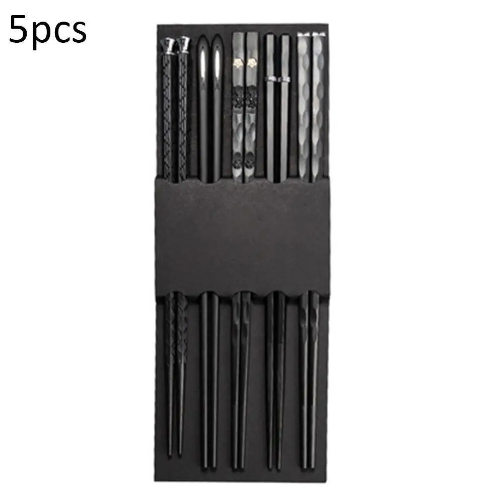 Китайские японские палочки для еды 5 пар, многоразовые металлические корейские палочки для еды, набор палочек из нержавеющей стали для суши