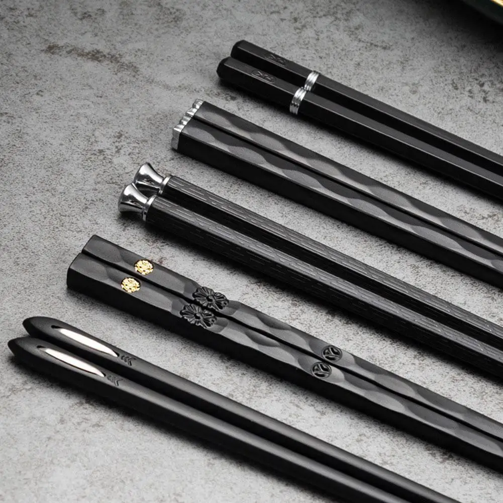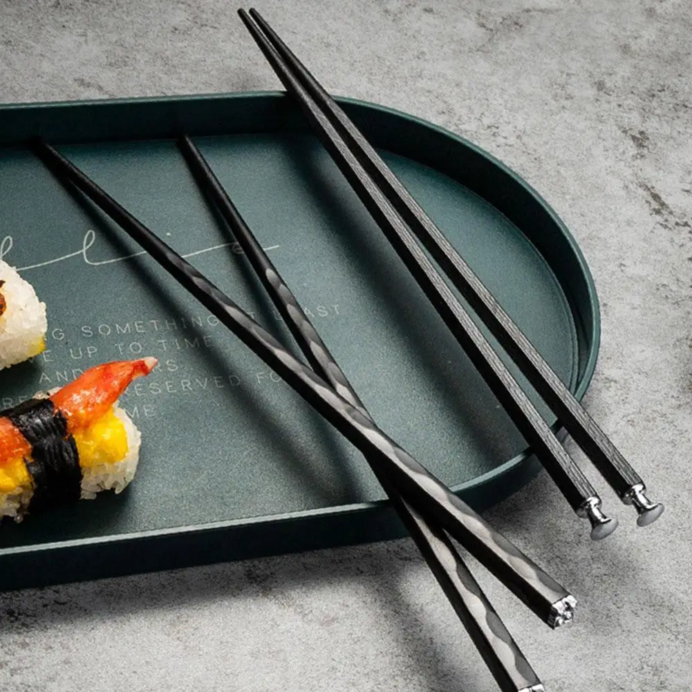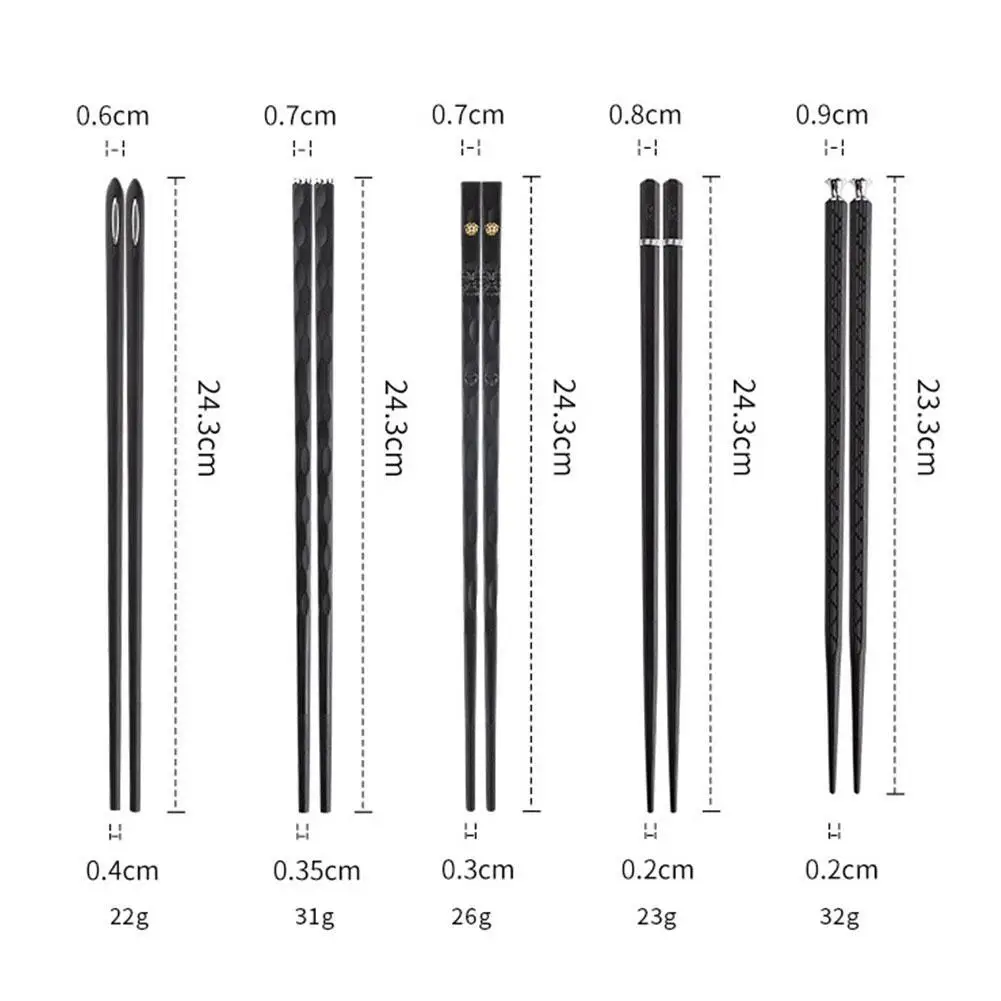 На 100% абсолютно новый качества и высокое качествоМатериал: сплавЦвет: черный + серебристыйРазмер: 24*0,4 смОсобенности:1. Усиленный Противоскользящий наконечник палочки для еды, который облегчает палочки для еды и имеет лучший эффект против скольжения2. Удобная ручная работа, подходит для безопасности, материал из сплава, здоровый и безопасный3. Износостойкость, высокая термостойкость, нелегко сломать, легко чистить и многоразовые4. Применимо к захвату различных пищевых продуктов5. Не впитывает влагу, защита от плесени, простая и легко моется. Посылка:5 * Палочки для еды
