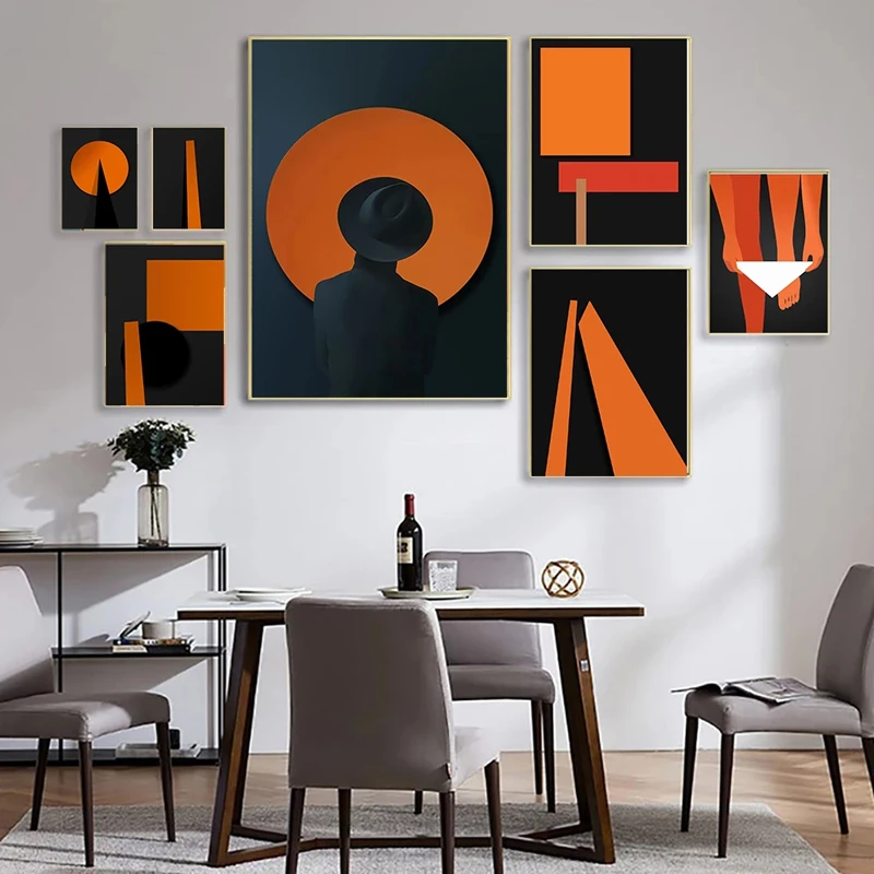 Мужчина с черной шляпой, холст, картины, планшетов и черно-оранжевых принтов, настенные картины для гостиной, домашний декор
