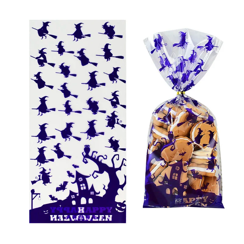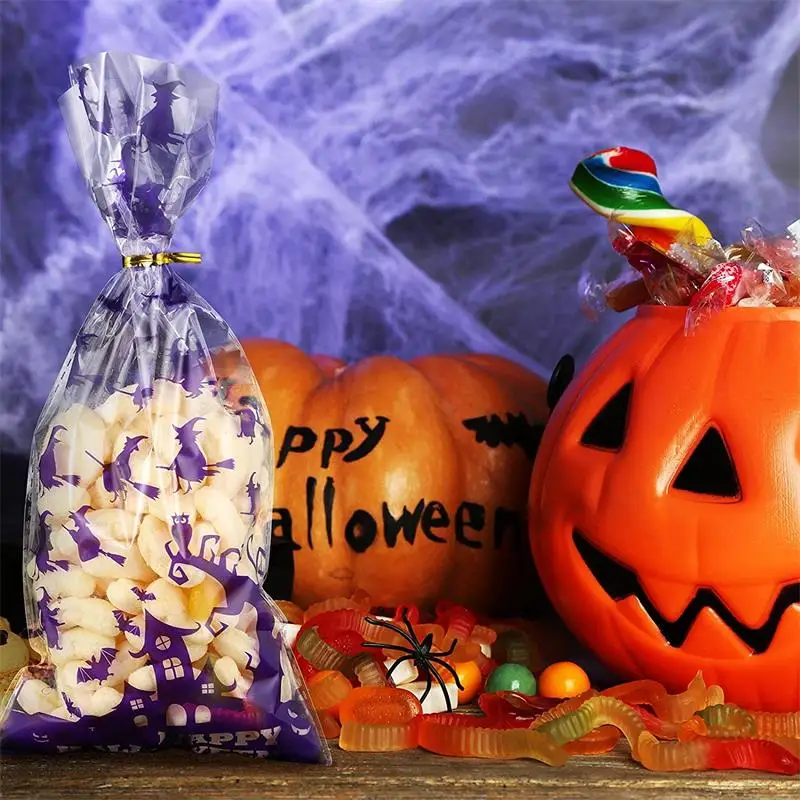 Прозрачный пакет для конфет с тыквой, черепом, кошкой, 50 шт.