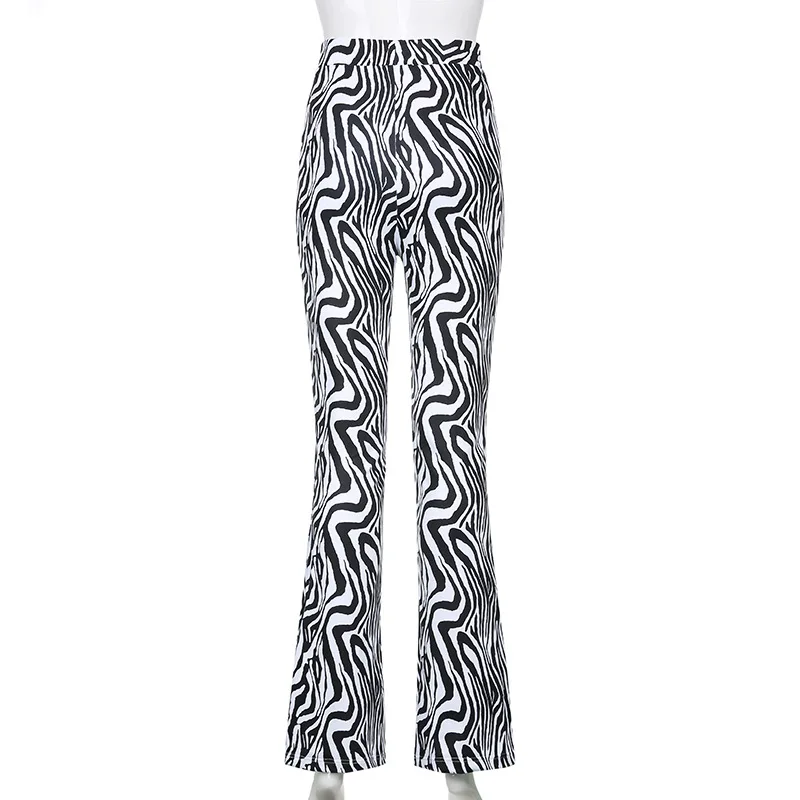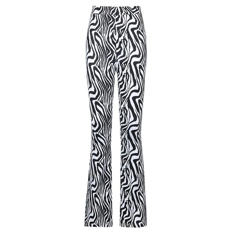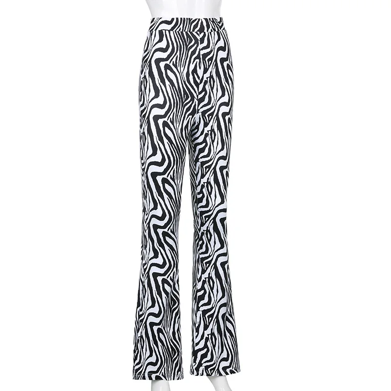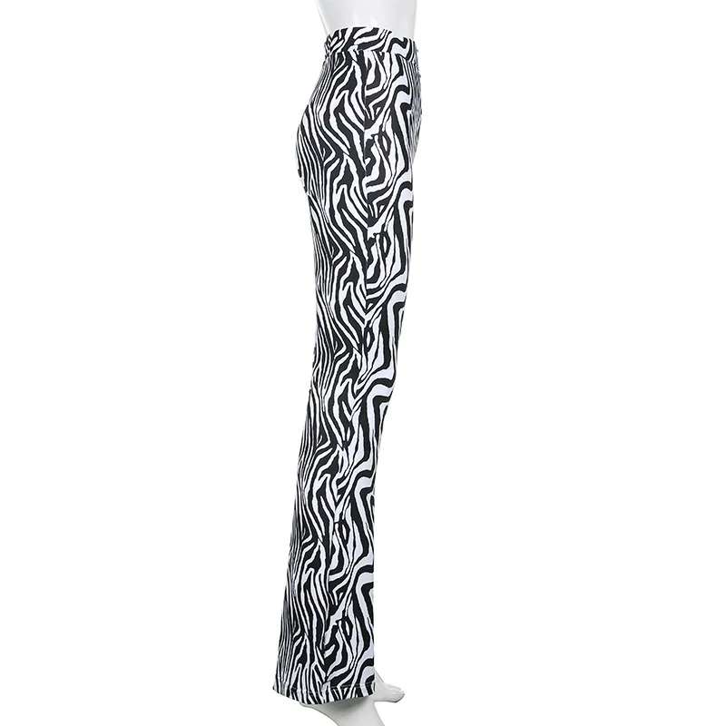 ZOVSV длинные брюки с принтом зебры с высокой талией женские винтаж...