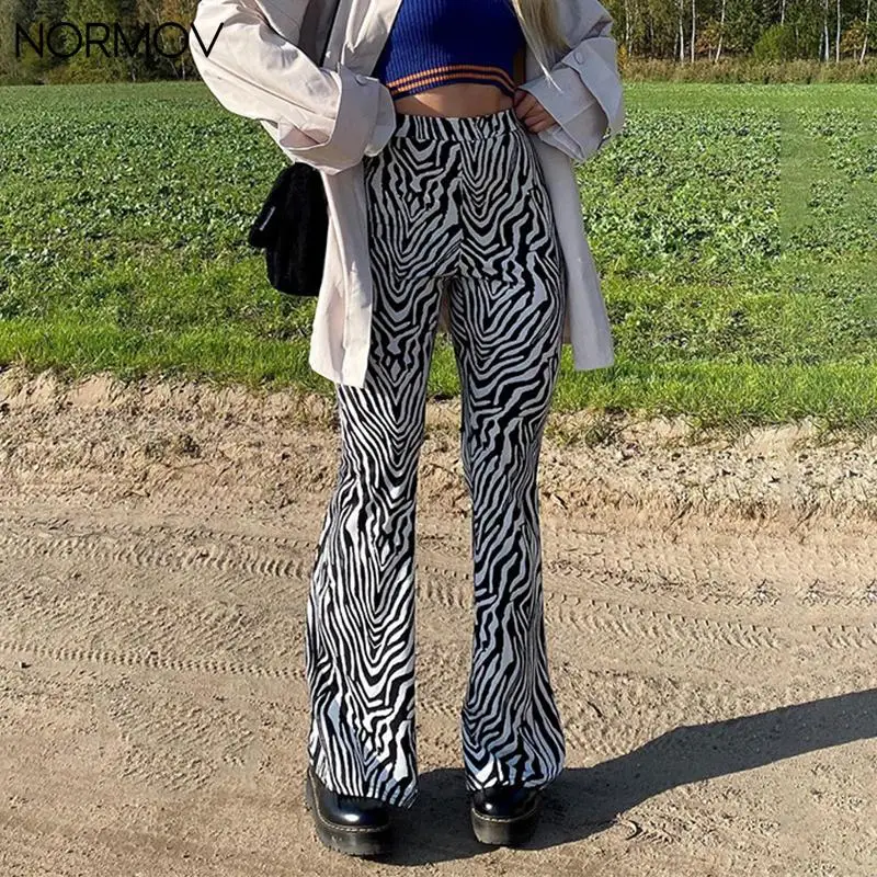 Женские широкие брюки-клеш NORMOV, с принтом зебры, с высокой талией, винтажные, спортивные штаны Y2K