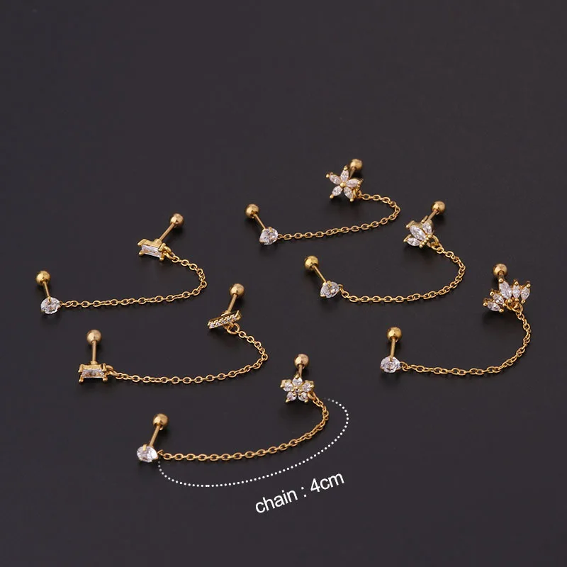 Серьги-гвоздики из нержавеющей стали с двойным отверстием, украшения для пирсинга с цветами, короной и искусственным цирконием, ювелирные изделия для ушной раковины, 1 шт.