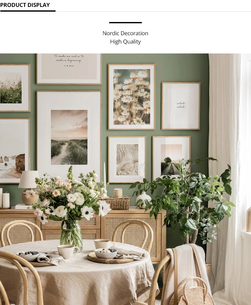 Настенная картина с изображением природного пейзажа, травы, цветов, на холсте, постеры и принты в скандинавском стиле, настенные картины для декора гостиной