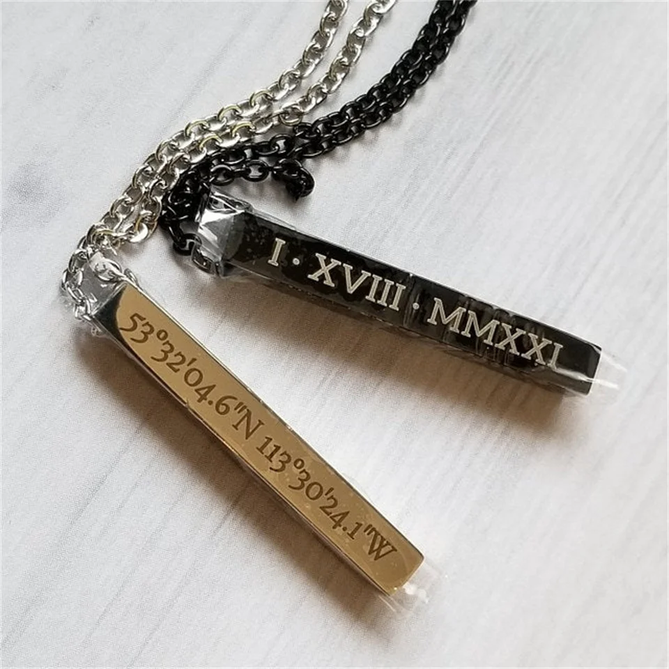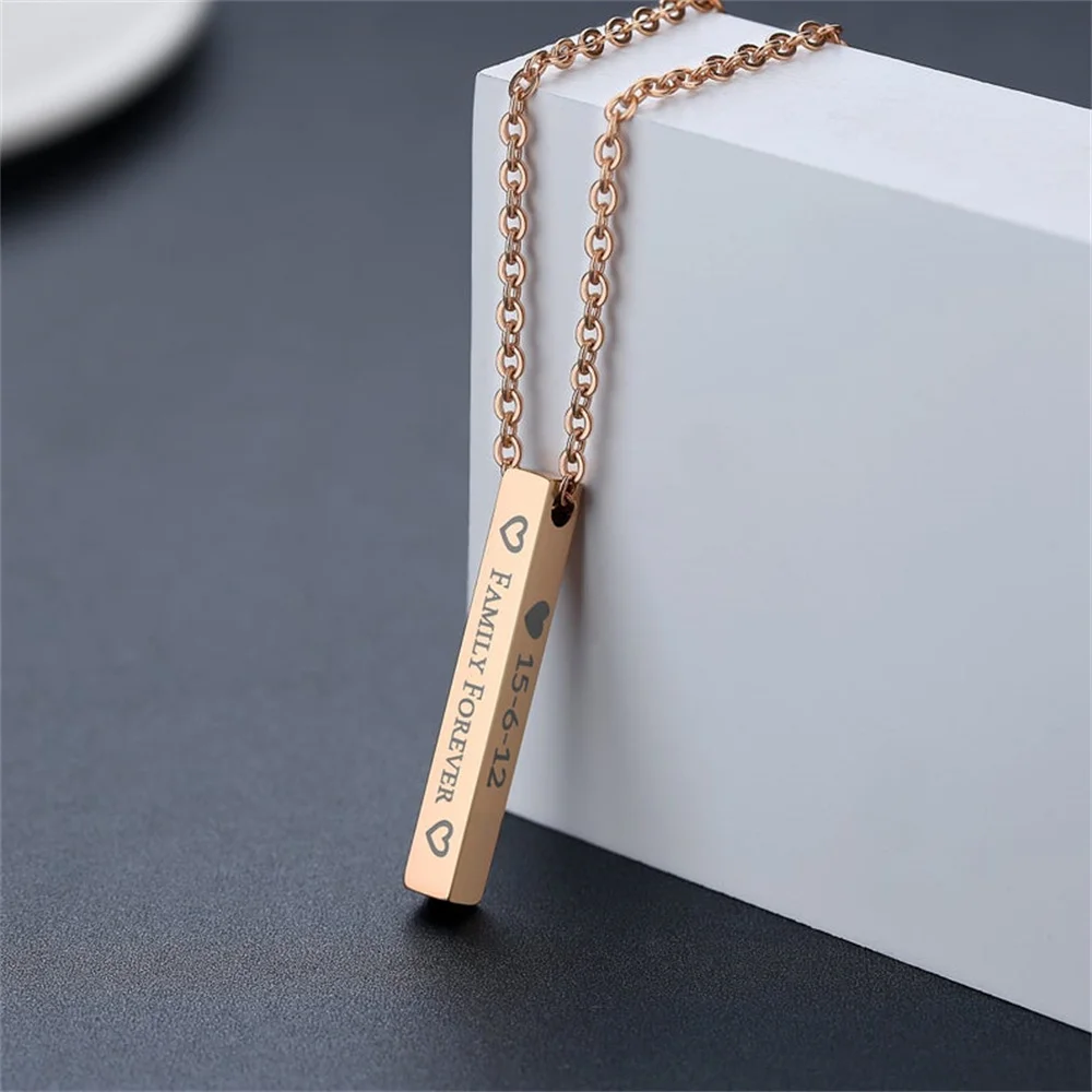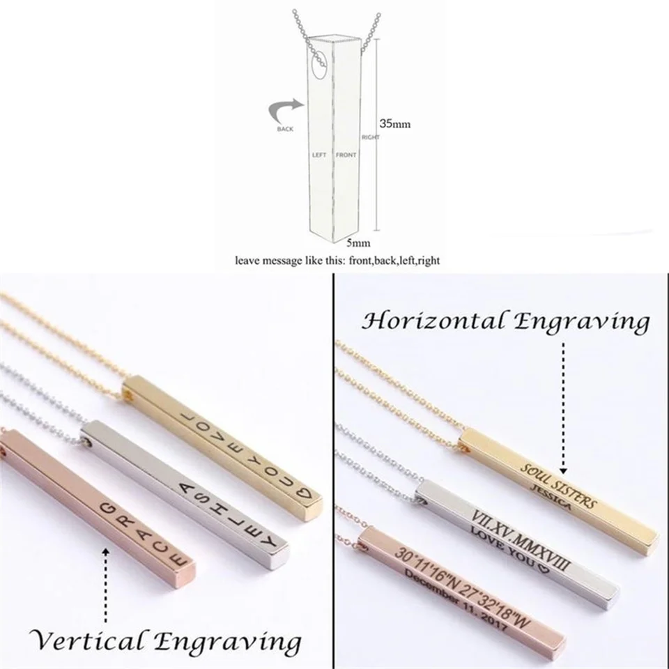 Четырёхсторонняя гравировка ожерелье с квадратной подвеской для мужчин 100% кулон из нержавеющей стали с именем на заказ ожерелье подарок ювелирные изделия для женщин