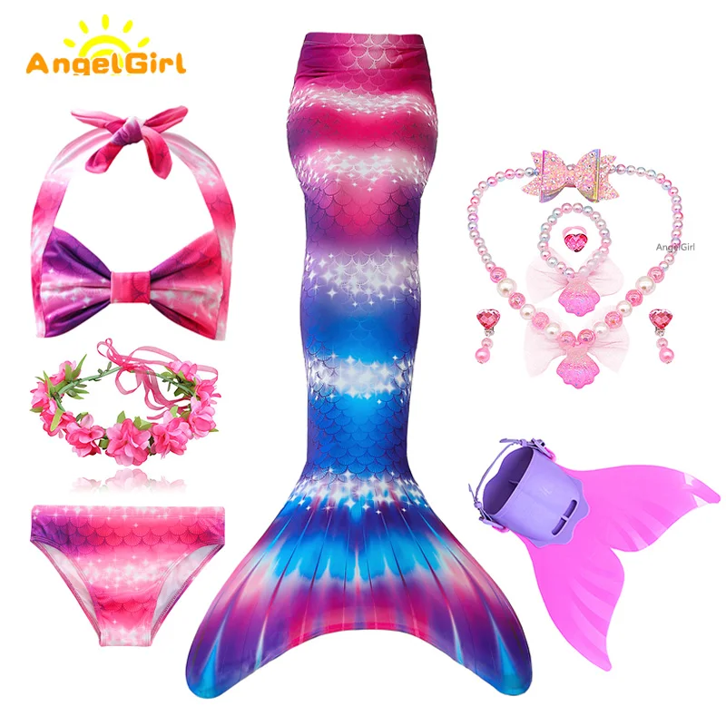 11 шт.: 1 * юбка с хвостом русалки + 1 * бюстгальтер + 1 * шорты + 1 * венок + 1 * монофин + 1 * ожерелье + 1 * браслет + 1 * кольцо + 1 пара зажимов для ушей + 1 * зажим для волос