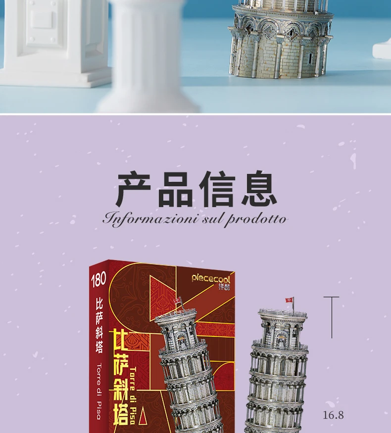 Набор металлических 3d-пазлов Piececool Торре ди Пиза, цветная игрушка для сборки своими руками, лазерная вырезка, подарок для детей