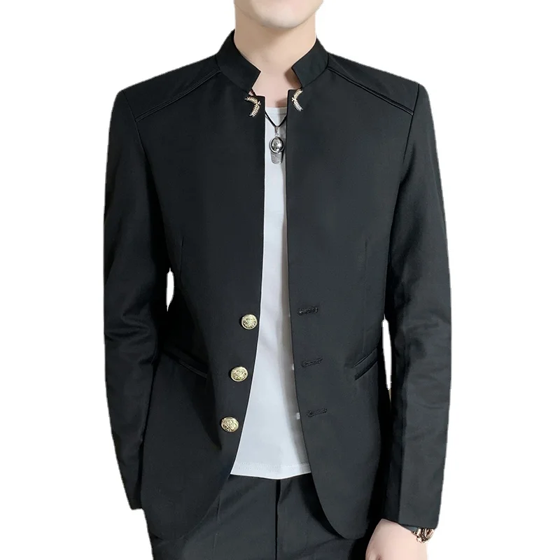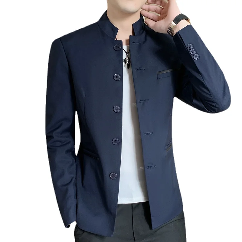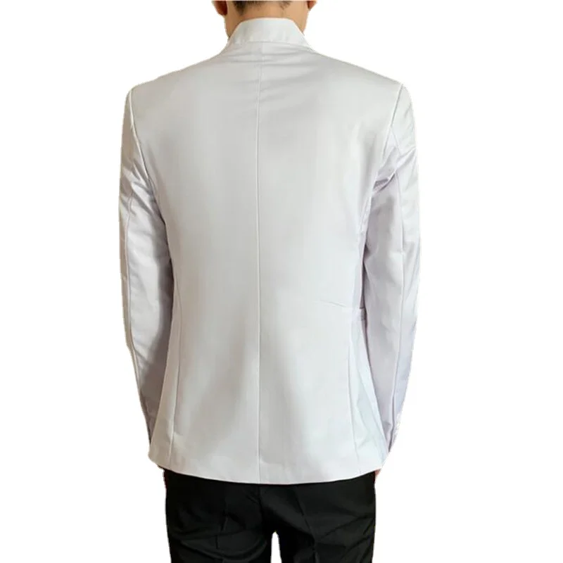 Однотонный новый мужской костюм с воротником-стойкой черный белый темно-синий китайский стиль Деловые свадебные блейзеры приталенная мужская куртка