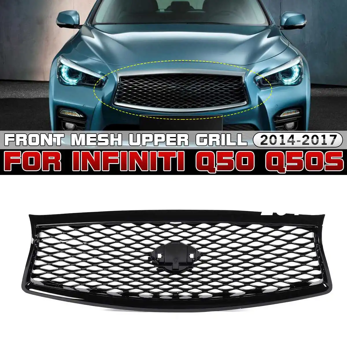 Сетчатая отделка переднего гриля автомобиля, подходит для Infiniti Q50 2014-2017, передний бампер, решетка гриля, рамка, отделка, углеродное волокно