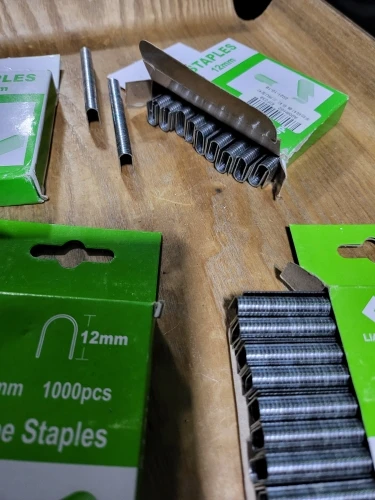 Подходит для большинства стандартных степлеров, снастей для гвоздиков, универсальные скобы предназначены для работы с большинством стандартных степлеров, что упрощает процесс поставки и позволяет легко заправлять.