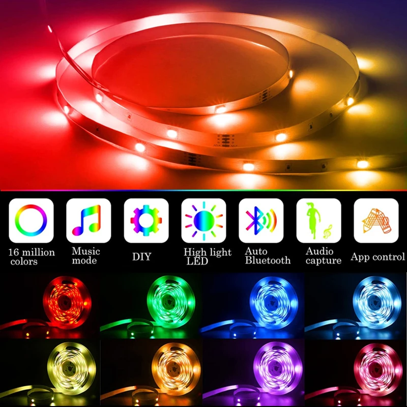 Светодиодная лента RGB 5050, гибкая Диодная подсветильник ка, лампа с Bluetooth, умный контроллер Wi-Fi, украшение для рождественской вечеринки, спальни