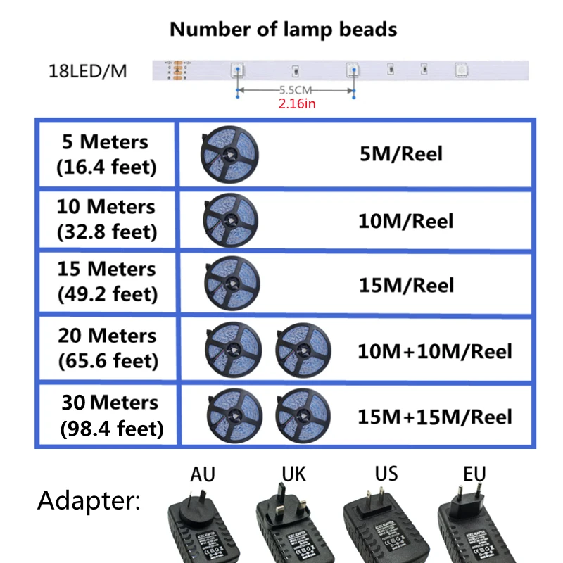 Страна: MA Emitting Color: Wifi Touch Control Color: Not waterproof 5050 Length: 30M Full Set Wattage: EU Plug Доставка: Cainiao Standard For Special Goods 24.11.2021