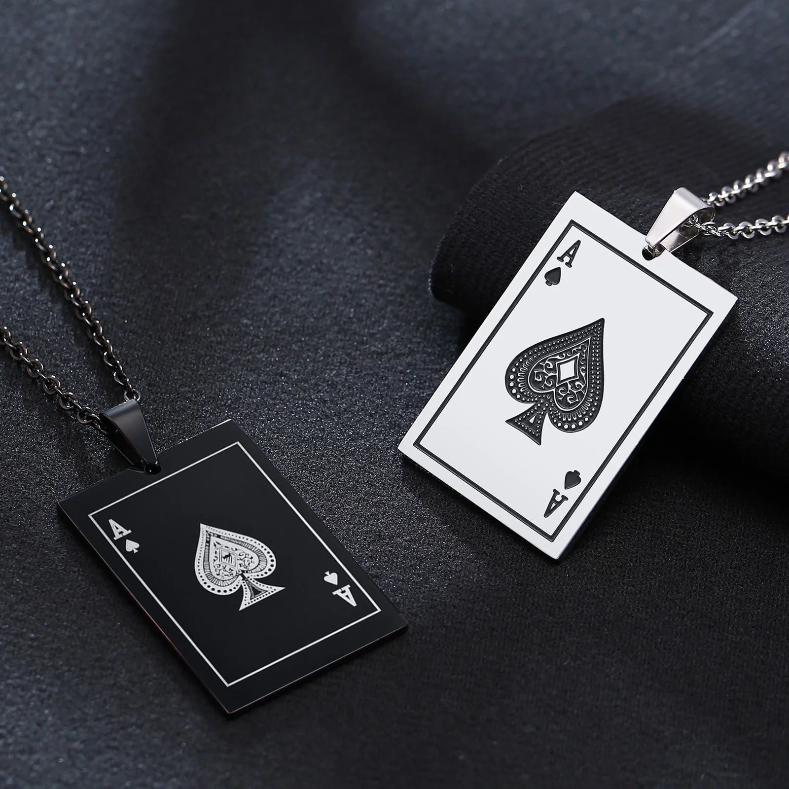 Мужские ожерелья Vnox на удачу с пиками, ювелирные изделия, подвеска в виде Покера из нержавеющей стали, в стиле рок-панк, казино, быстрая работа
