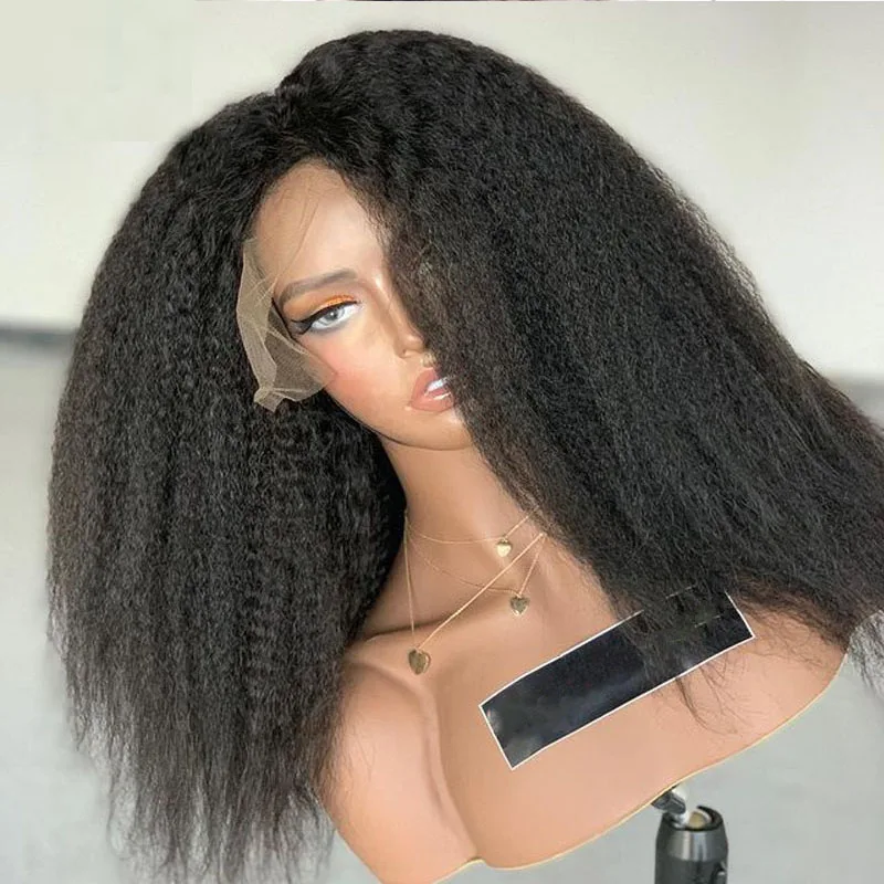 Синтетический кудрявый прямой парик на сетке спереди длинный Yaki п...