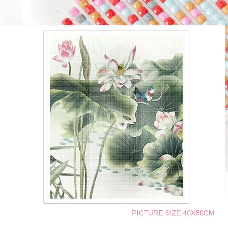 Алмазная 5D картина сделай сам в китайском стиле, наборы для вышивки крестиком в виде пруда и лотоса, вышивка, круглые квадратные мозаичные картины, домашний декор