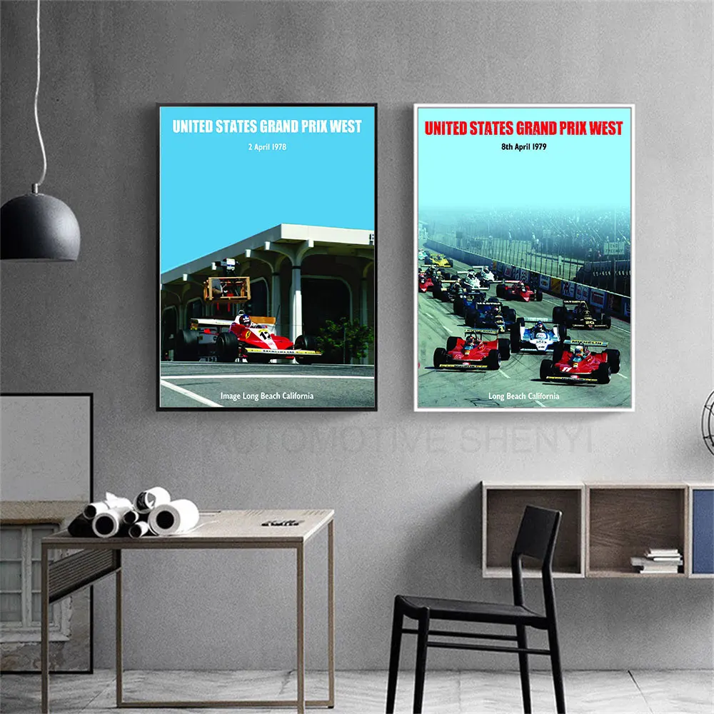 Гран-при Соединенных Штатов, гоночный автомобиль, ВИНТАЖНЫЙ ПЛАКАТ, печать на холсте, живопись, домашний декор, Настенная картина для гостиной