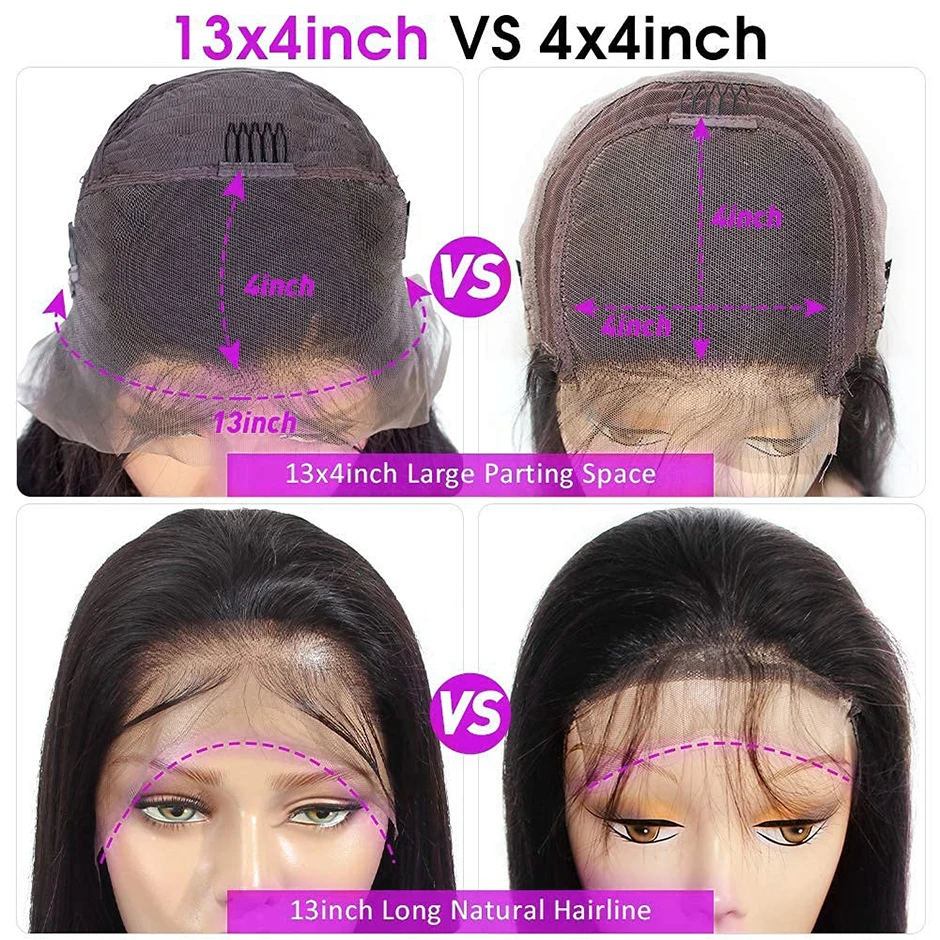 Парик для женщин с прямыми кружевами спереди, парики из человеческих волос, необработанный индийский парик на сетке 4x4, 30 дюймов, длинные прямые волосы 13x 4, парик на сетке спереди