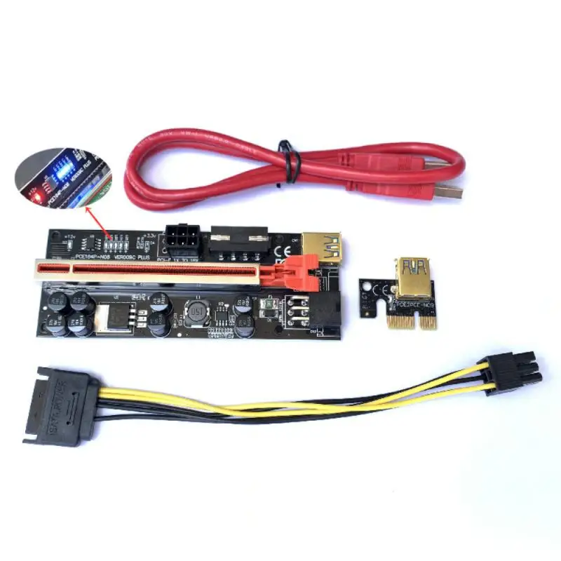 Подъемная карта PCI-E, карта 009S PCI Express PCIE 1X до 16X, расширитель 1 м, 0,6 м, USB 3,0, кабель SATA на 6 контактов питания для видеокарты