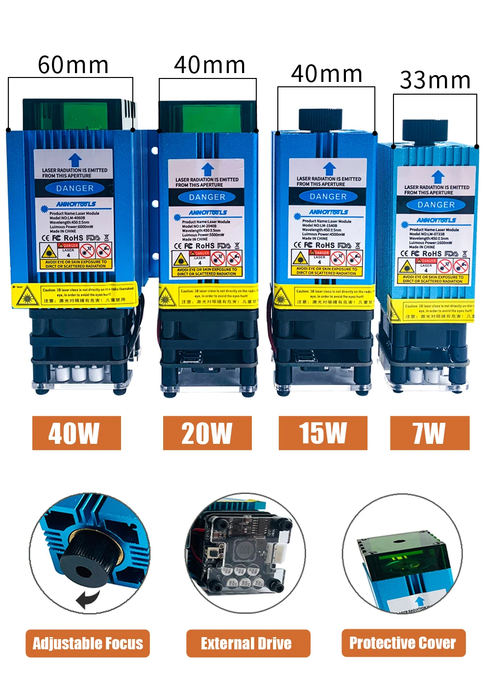Мощность лазера: 7 Вт/15 Вт/20 Вт/40 Вт