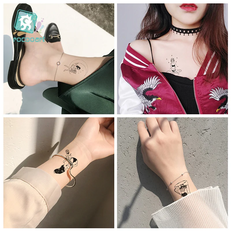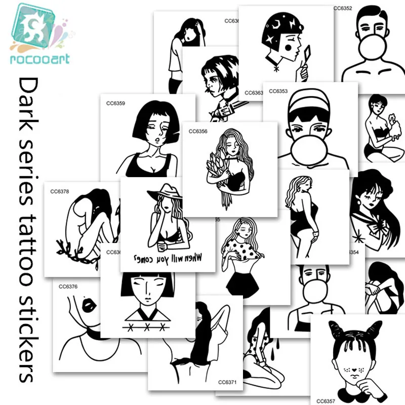 Rocooart CC 6X6cm различные маленькие татуировки дизайн черный старый школьный стиль женщины Временные татуировки стикер боди-арт поддельные руки татуировки