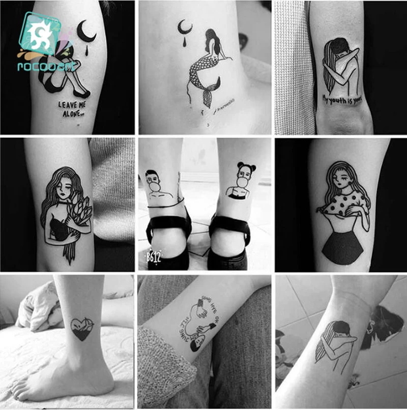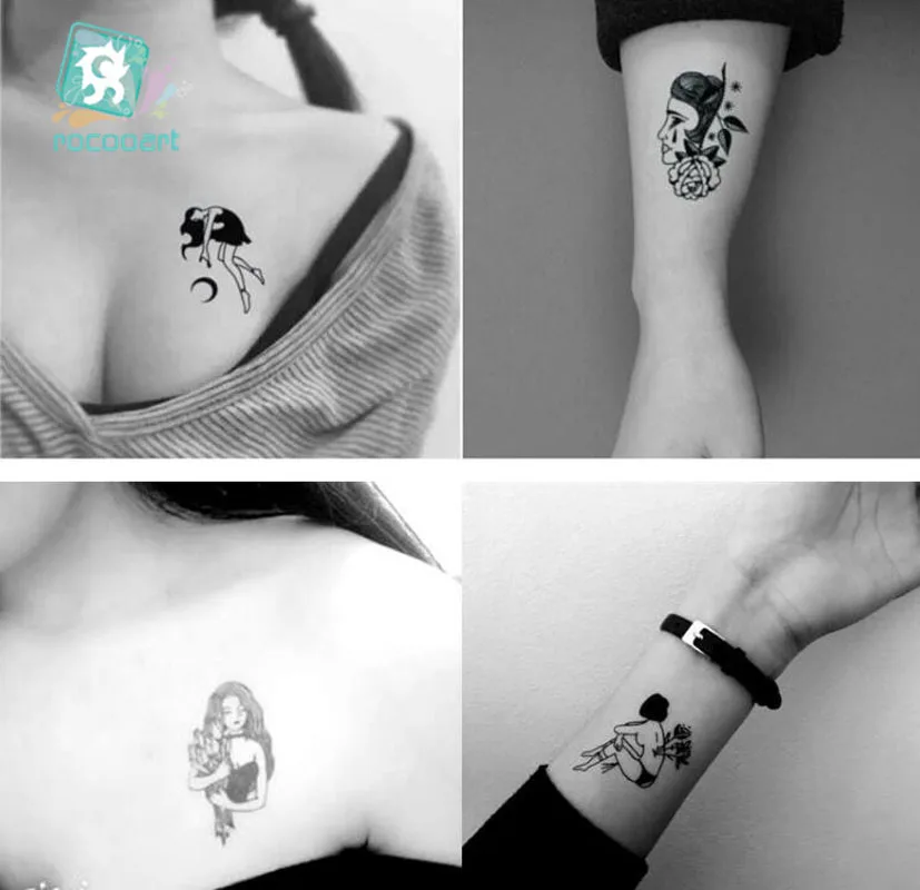 Rocooart 6X6cm винтажная маленькая татуировка сексуальный дизайн черный старошкольный Стиль Женский временный тату стикер боди-арт поддельные тату