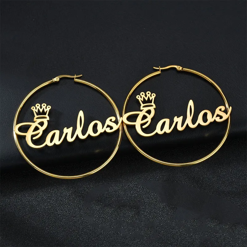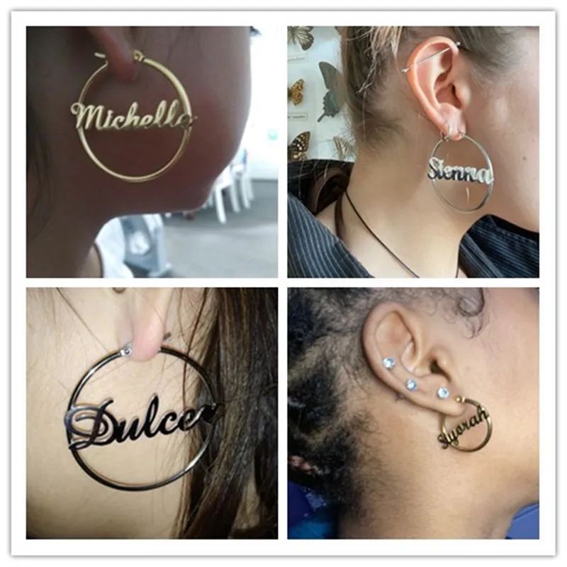 Серьги-кольца в стиле панк с именем на заказ, ювелирные украшения из нержавеющей стали с персонализированными цифрами с буквами, с именной табличкой, 30-100 мм