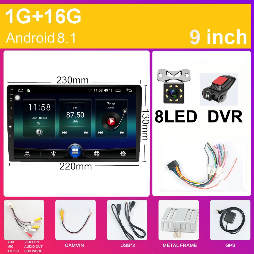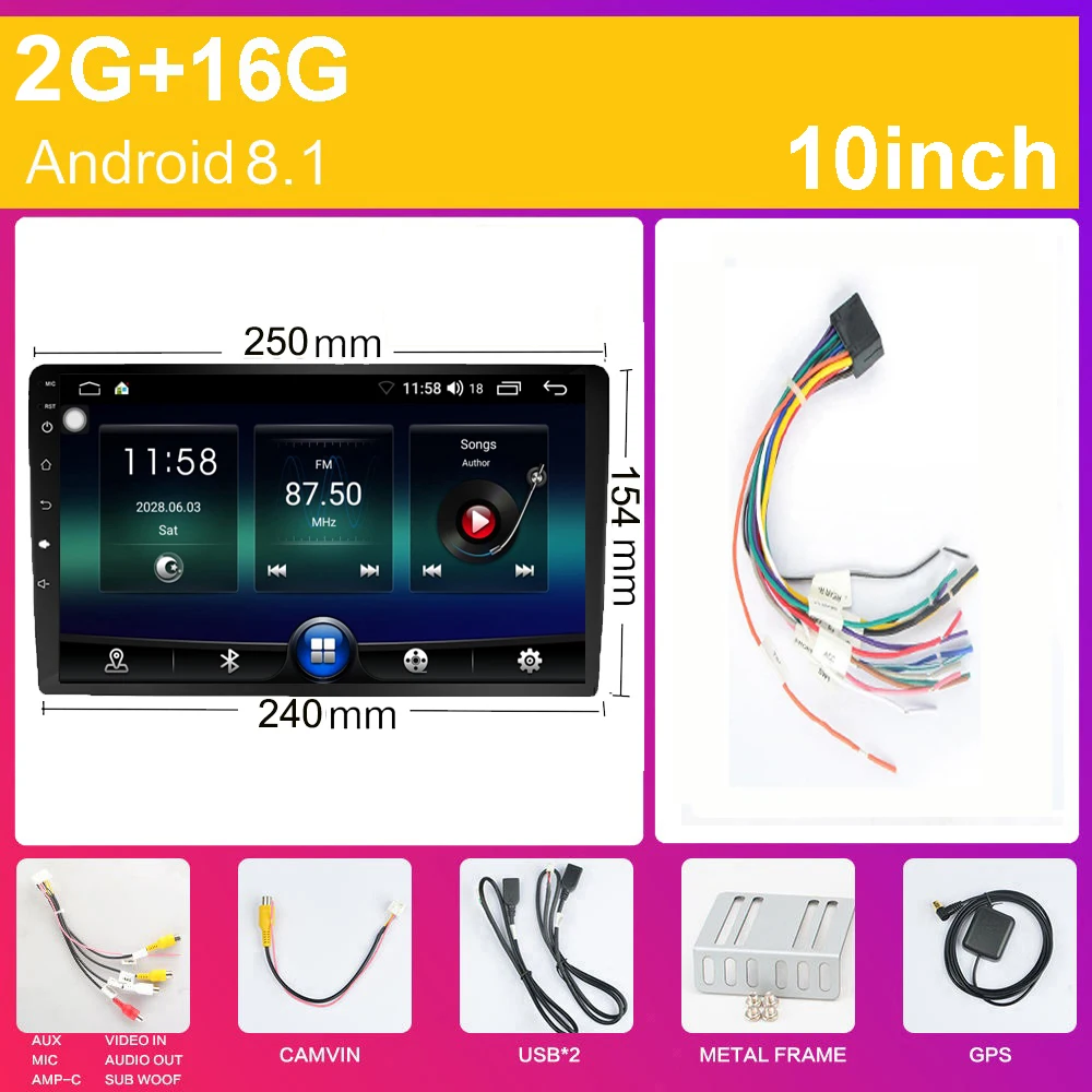 Автомобильный мультимедийный плеер, автомагнитола на Android, с 9 "экраном, 10" экраном, GPS, Wi-Fi, без DVD, для автомобиля, DSP 15EQ, BT, DAB, FM, 1 Гб + 16 ГБ, типоразмер 2 DIN