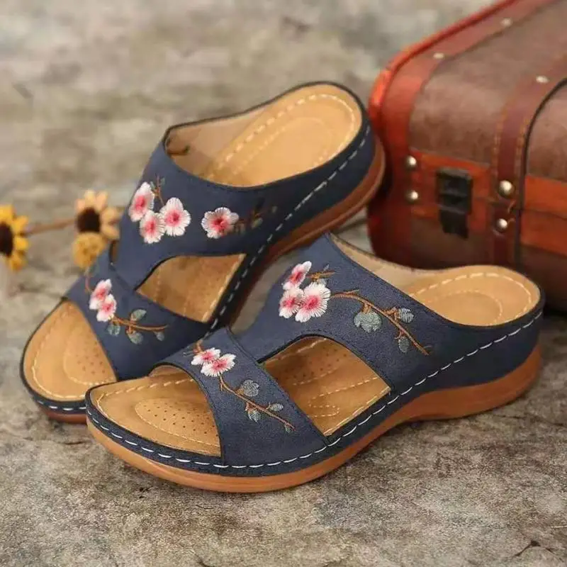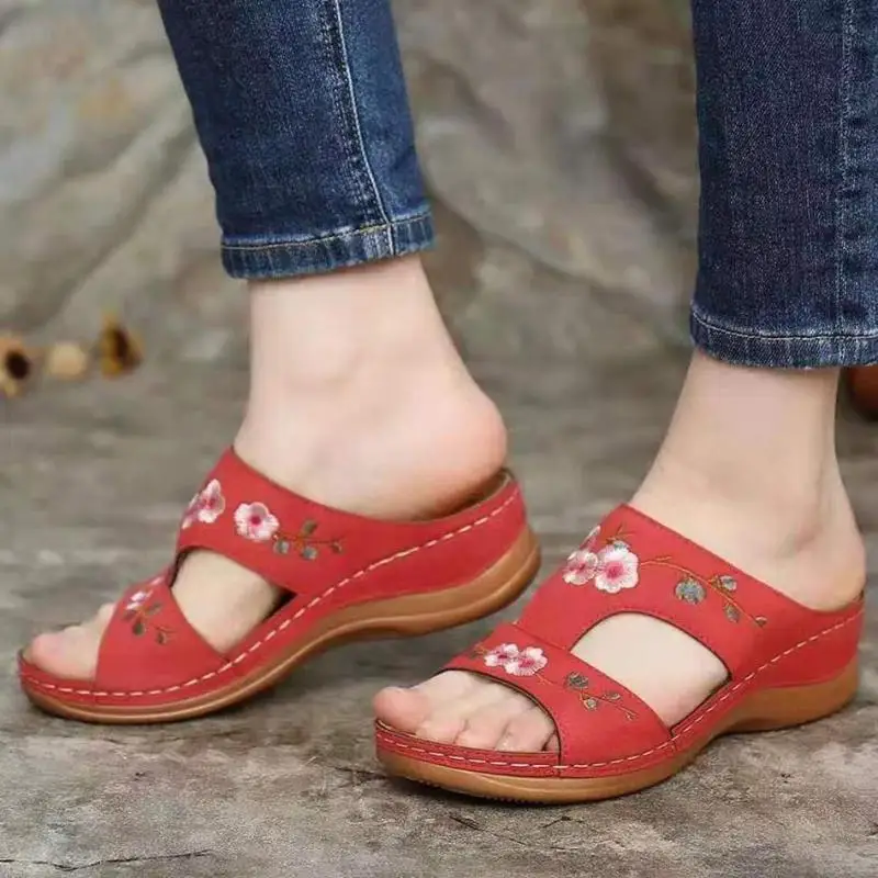 Женские сандалии на плоской подошве, разноцветные шлепанцы с цветами ручной работы в стиле ретро, лето 2021
