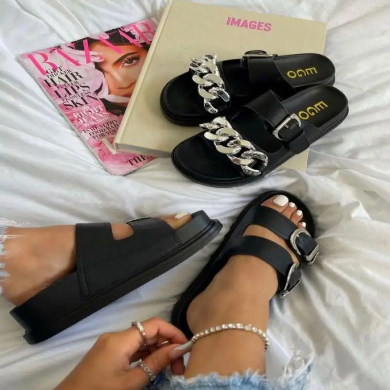 Женские сандалии с пряжкой, черные, белые, на толстой подошве, удоб...