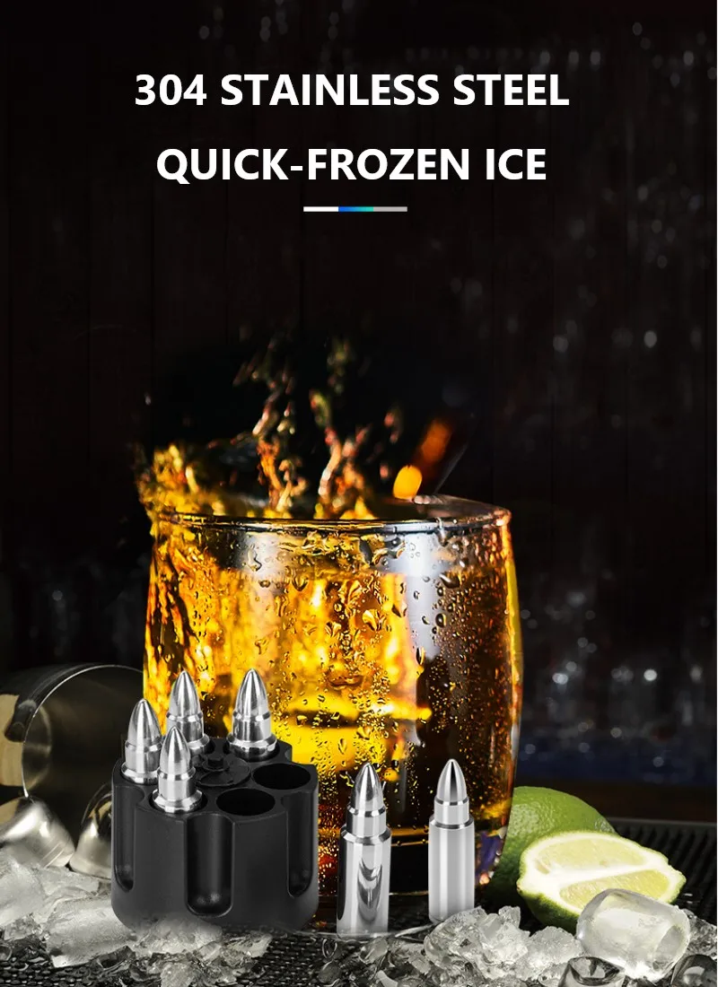 Кубики льда из нержавеющей стали в виде пули, быстрозамороженный та...