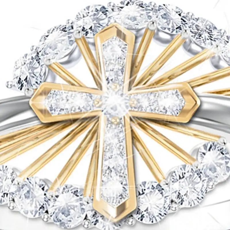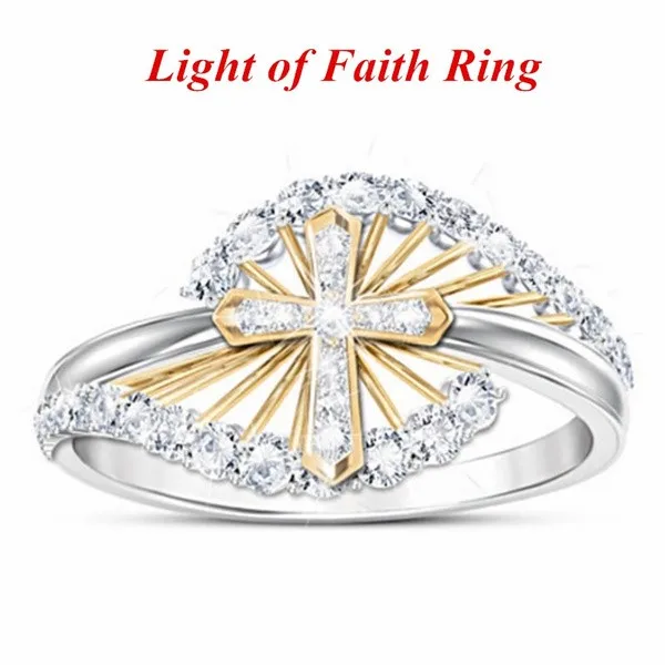 Кольцо светильник of Faith, изысканное модное кольцо с белым топазом и крестом от священной веры, ювелирные украшения для дам, Подарок на годовщину