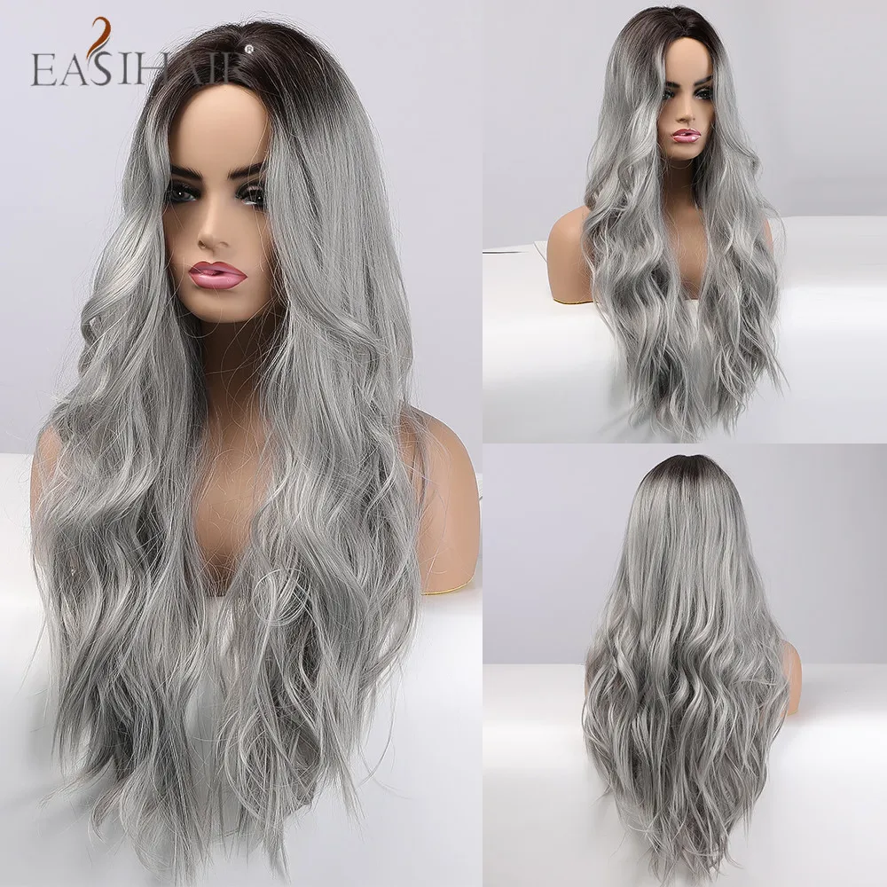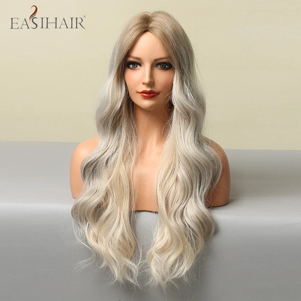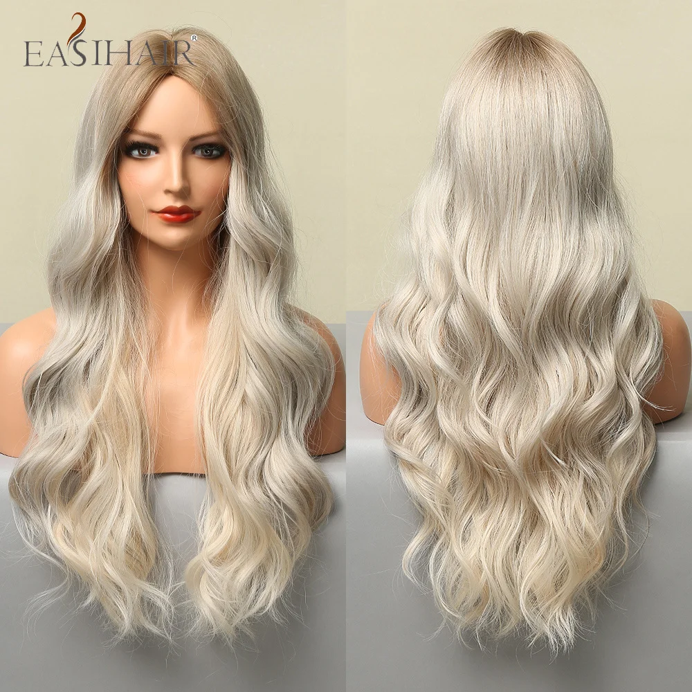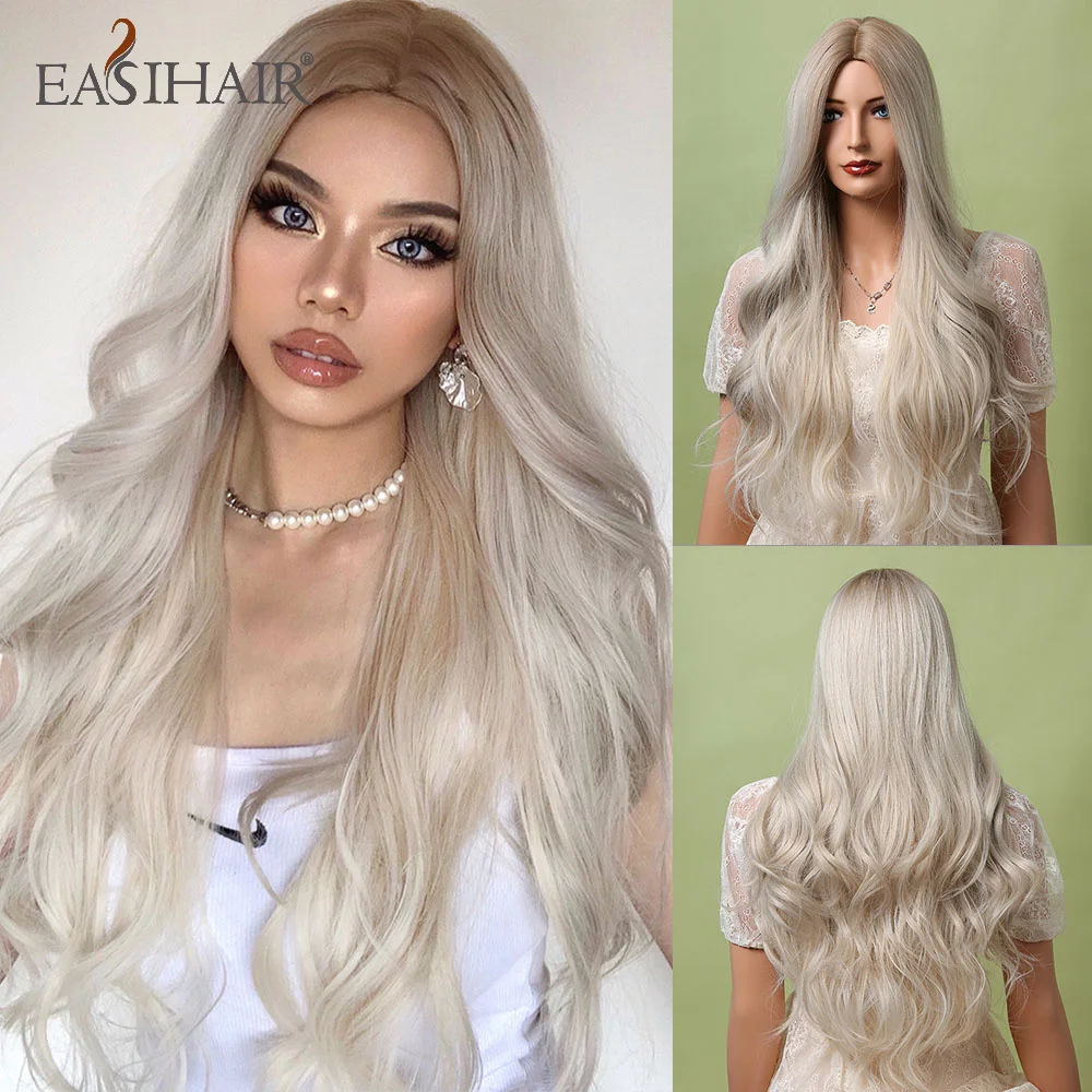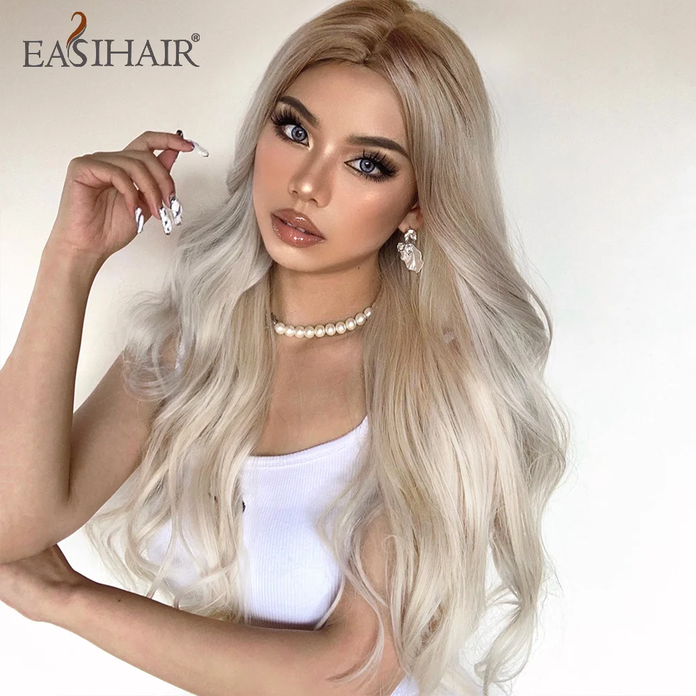 EASIHAIR длинный светильник, платиновый блонд, волнистые синтетические парики, средняя часть, термостойкие натуральные волосы для женщин, косплей, вечерние, на каждый день