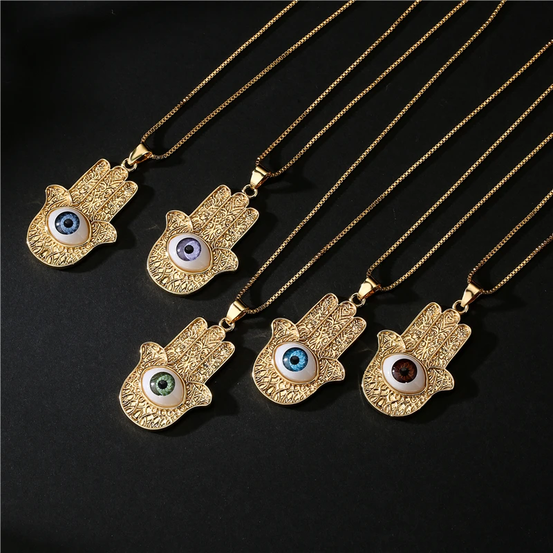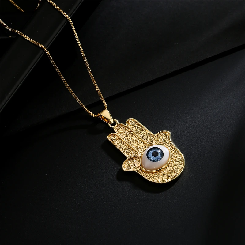 NEWBUY винтажное богемное золотистое медное ожерелье с кулоном в виде ладони для женщин и мужчин 5 цветов s Ожерелье сглаза на удачу ювелирные изделия в подарок