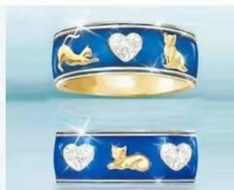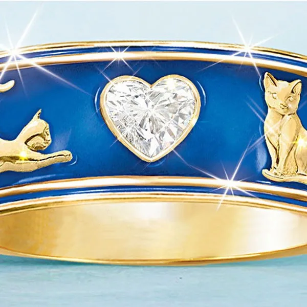 "Кошки, полные любви" изысканное модное двухцветное кольцо в форме синего сердца, кольцо с котенком для девочки, ювелирные изделия, Подарок на юбилей
