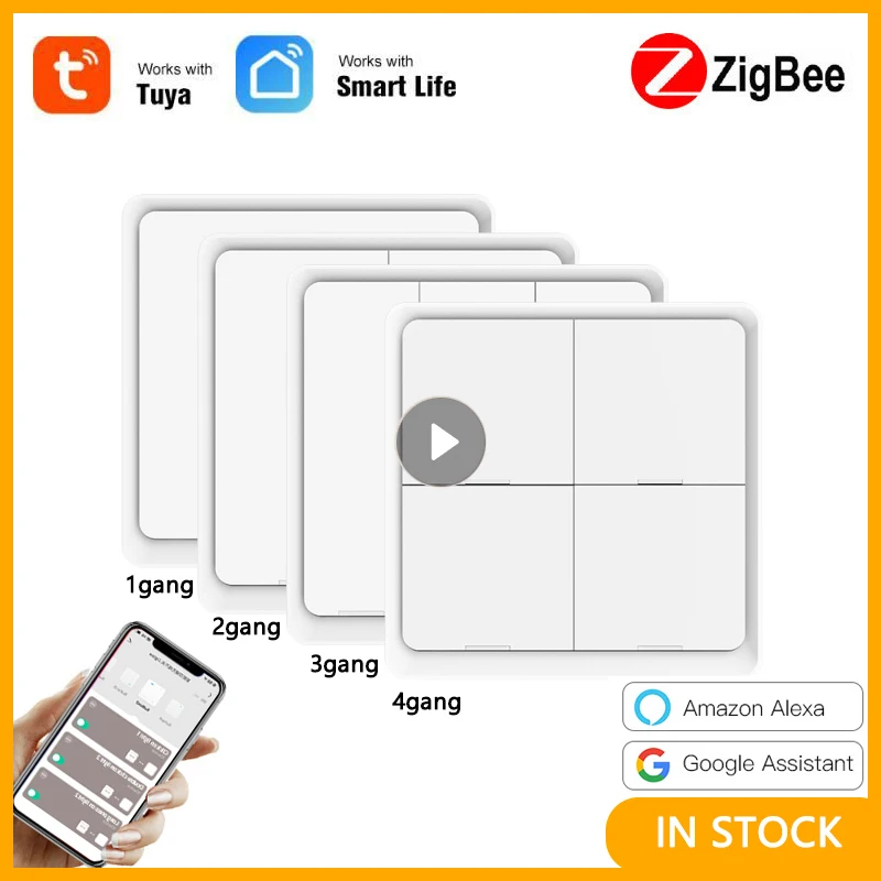 Умный беспроводной переключатель Tuya ZigBee, самоклеящаяся панель с 4 каналами, кнопка для умного дома, работает с Google Home, Alexa, Amazon