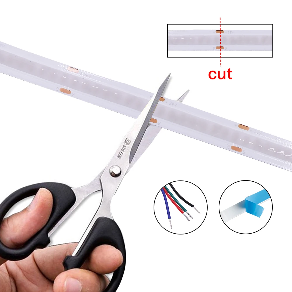 【Быстрая и простая установка 】светодиодная лента RGB COB имеет прочный самоклеящийся задний клей и гибкий дизайн полосы, который можно приклеить на любую сухую и ровную поверхность. Мы рекомендуем вам проверить свет перед установкой. (Примечание: Перед наклеиванием полосы света, пожалуйста, подтвердите его положение, избегайте вторичной вставки).