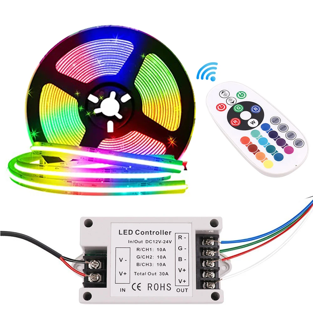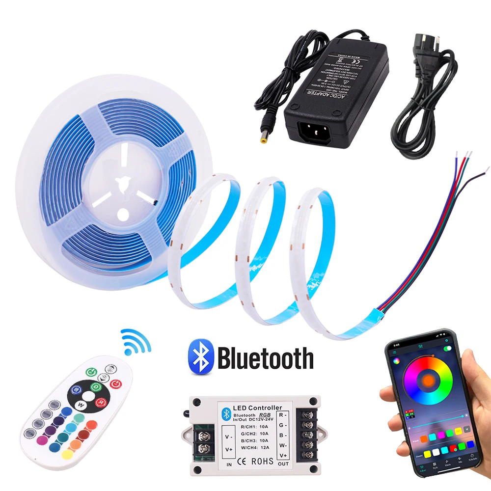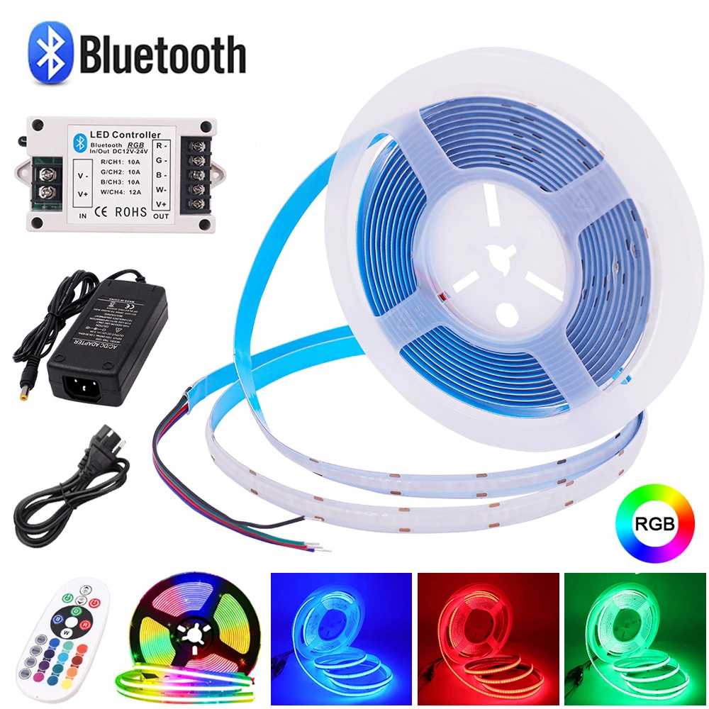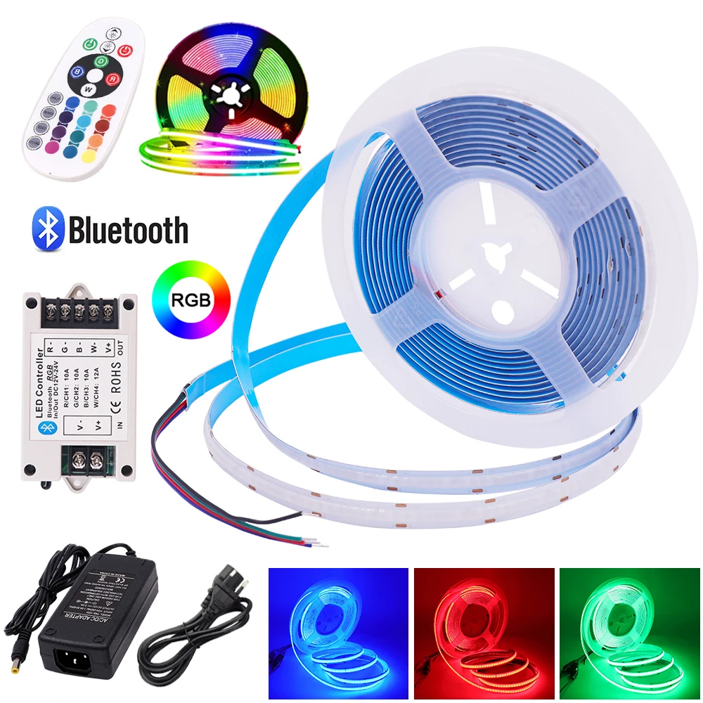 12В 24В RGB COB Светодиодный прожектор Bluetooth-совместимое приложение управление 24key пульт ДУ 840 светодиодныйm 5 м 16,4 фута гибкие полосы для домашнего бара