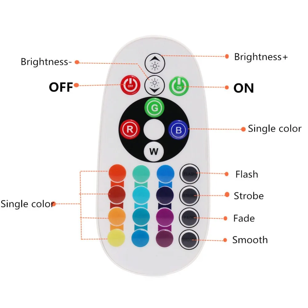 【 Пульт дистанционного управления с 24 клавишами 】умная светодиодная подсветка для спальни ИК-пульт дистанционного управления с 24 клавишами, включая 16 различных цветов света, мульти регулировка яркости, 4 динамических режима освещения. Дает вам красочную жизнь. Вы также можете использовать режимы стробоскопа, затухания, вспышки и т. Д. Для проведения вечеринок, что может подарить вам идеальный опыт вечеринки.