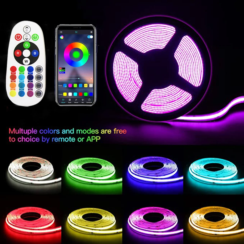 Светодиодная лента RGB COB, совместимая с Bluetooth, 5 м, 16,4 фута, меняющая цвет, с управлением через приложение, 24-клавишный пульт дистанционного управления, ультра яркие 840LED светодиодные полосы для украшения дома, вечеринки